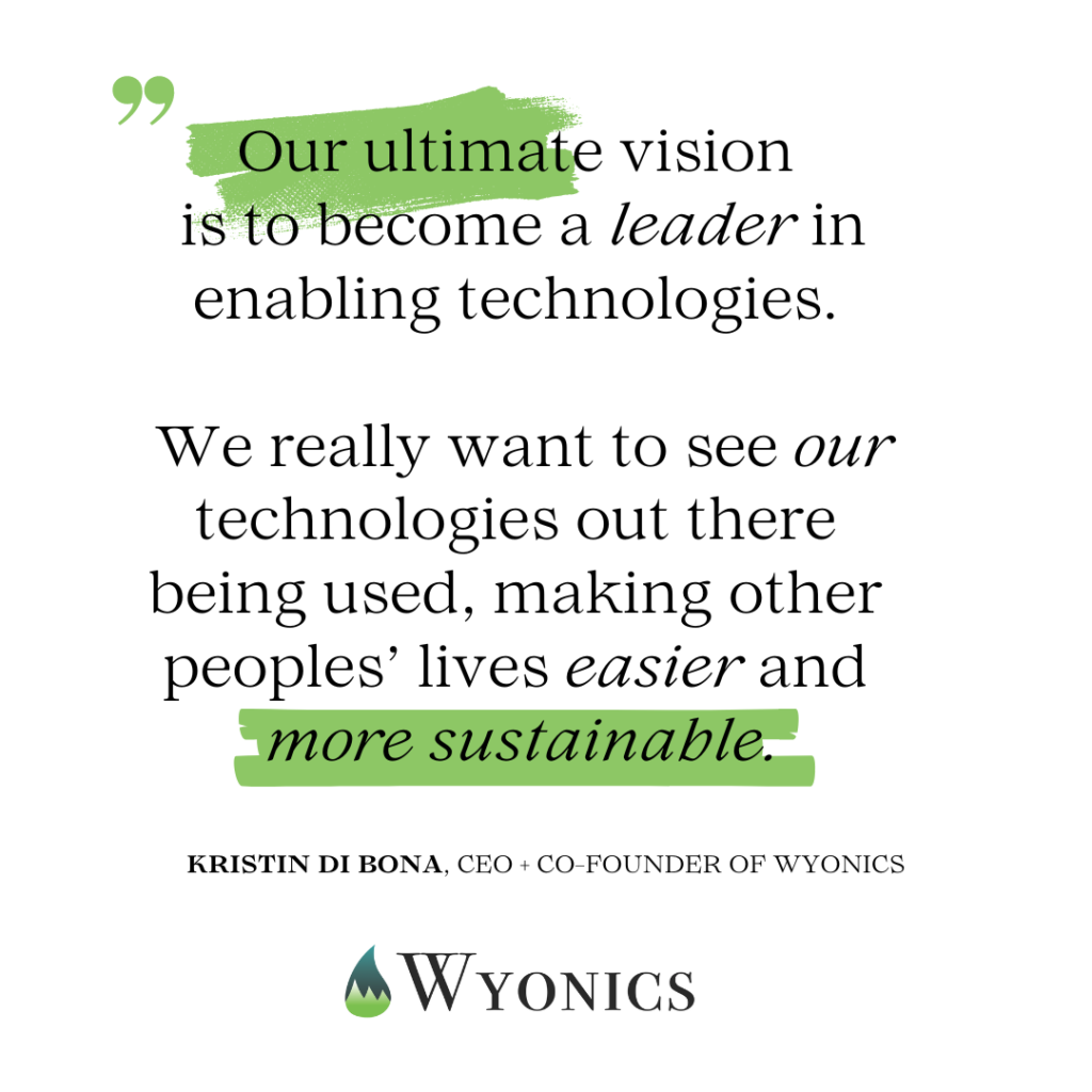 Wyonics aims to become a leader in enabling technologies with a focus on sustainability. Kristin envisions a future where their technologies are widely used, making significant contributions to various industries while promoting environmental responsibility.